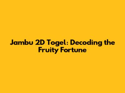 Jambu 2D Togel: Decoding The Fruity Fortune