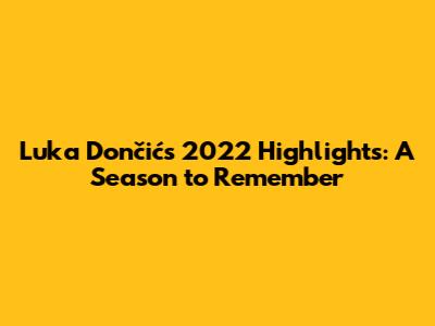 Luka Dončić's 2022 Highlights: A Season To Remember
